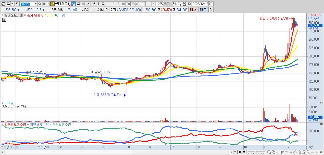 - 현대오토에버 (292,500원 ▼ -0.51% , 시총: 80,215억, 외국인 순매수 거래금:122억)