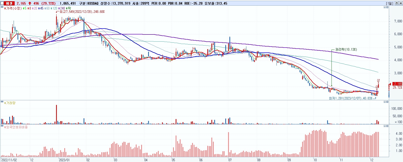 - 베셀 (2,165원 ▲ 29.72% , 시총: 289억, 거래량: 1,867,067, 거래대금:39억)