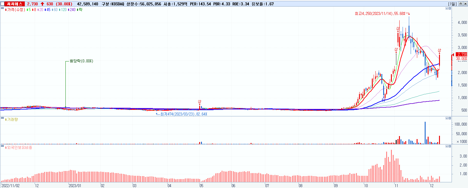 시총: 1,529억 거래량: 42,603,848 거래대금:1,060억