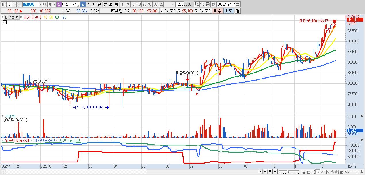 미원화학 95,100원 ▲ 0.63% (KOSPI, 134380)