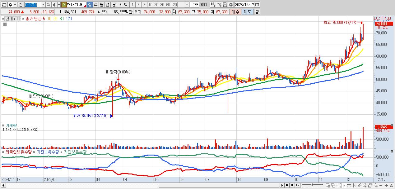 - 현대위아 (73,600원 ▲ 9.52% , 시총: 20,016억, 거래량: 767,268, 거래대금:561억, KOSPI)