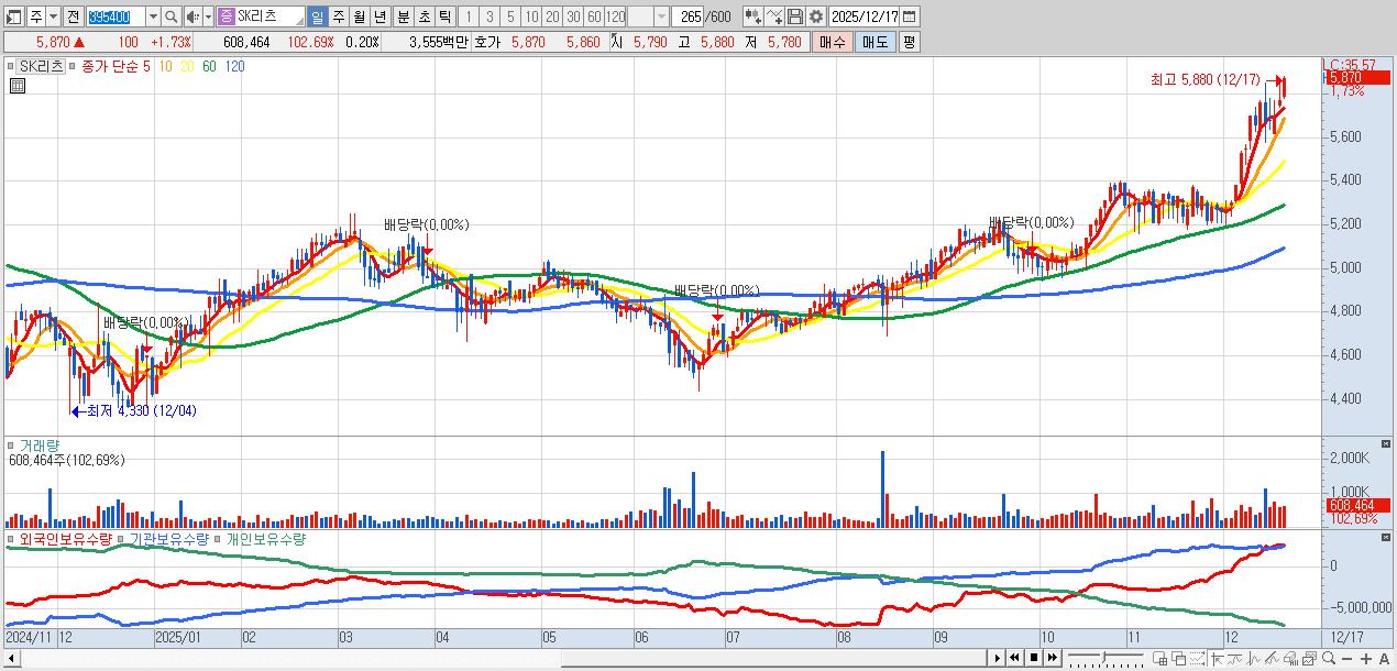 - SK리츠 (5,870원 ▲ 1.73% , 시총: 17,423억, 거래량: 608,464, 거래대금:36억, KOSPI)