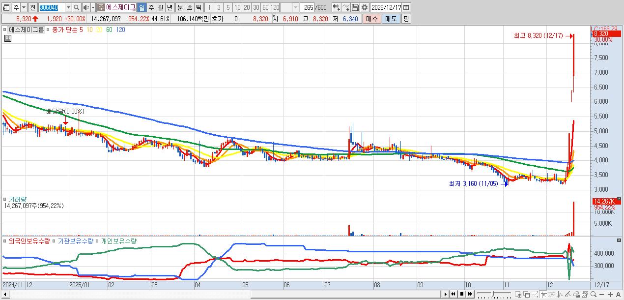 에스제이그룹 8,320원 ▲ 30% (KOSDAQ, 306040)