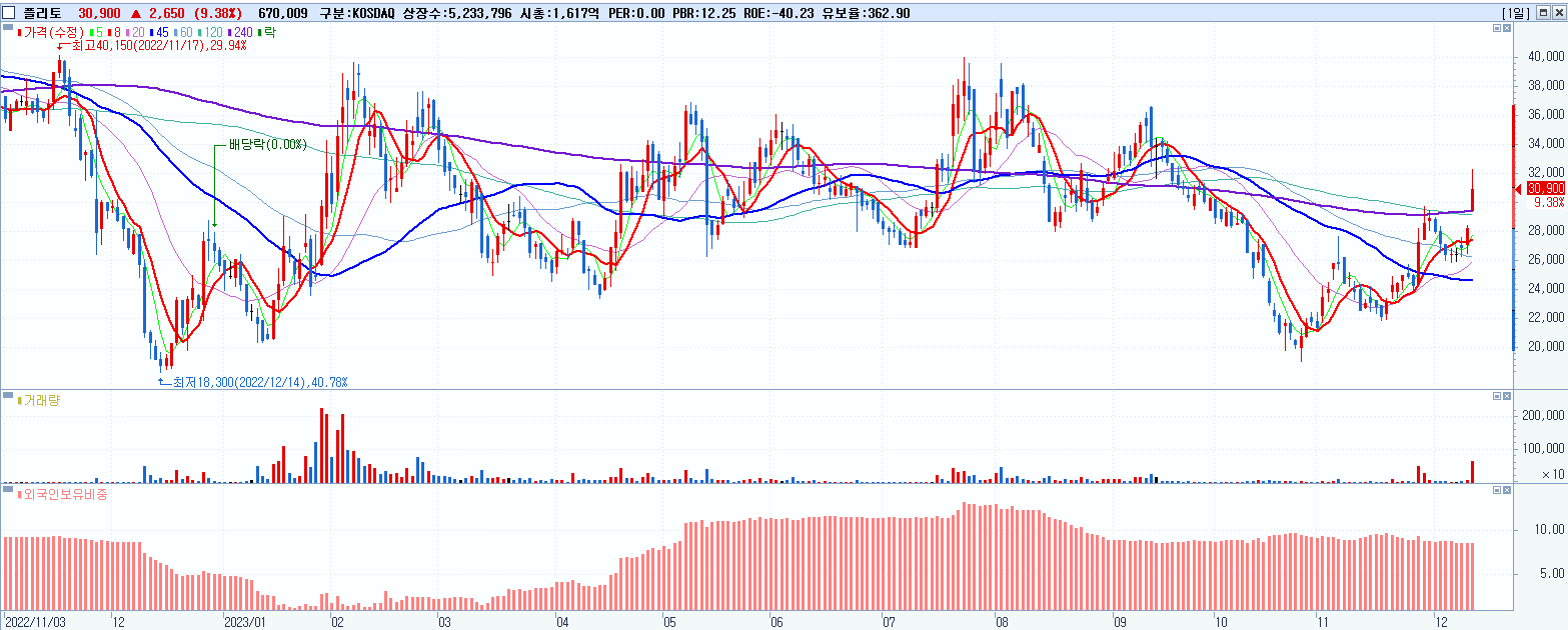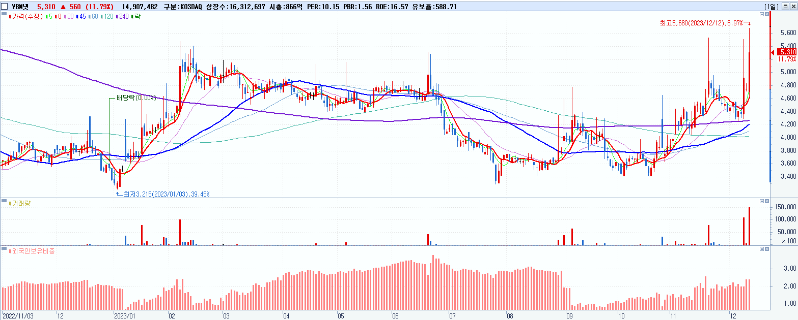 시총: 16,237억 거래량: 42,916,293 거래대금:9,581억