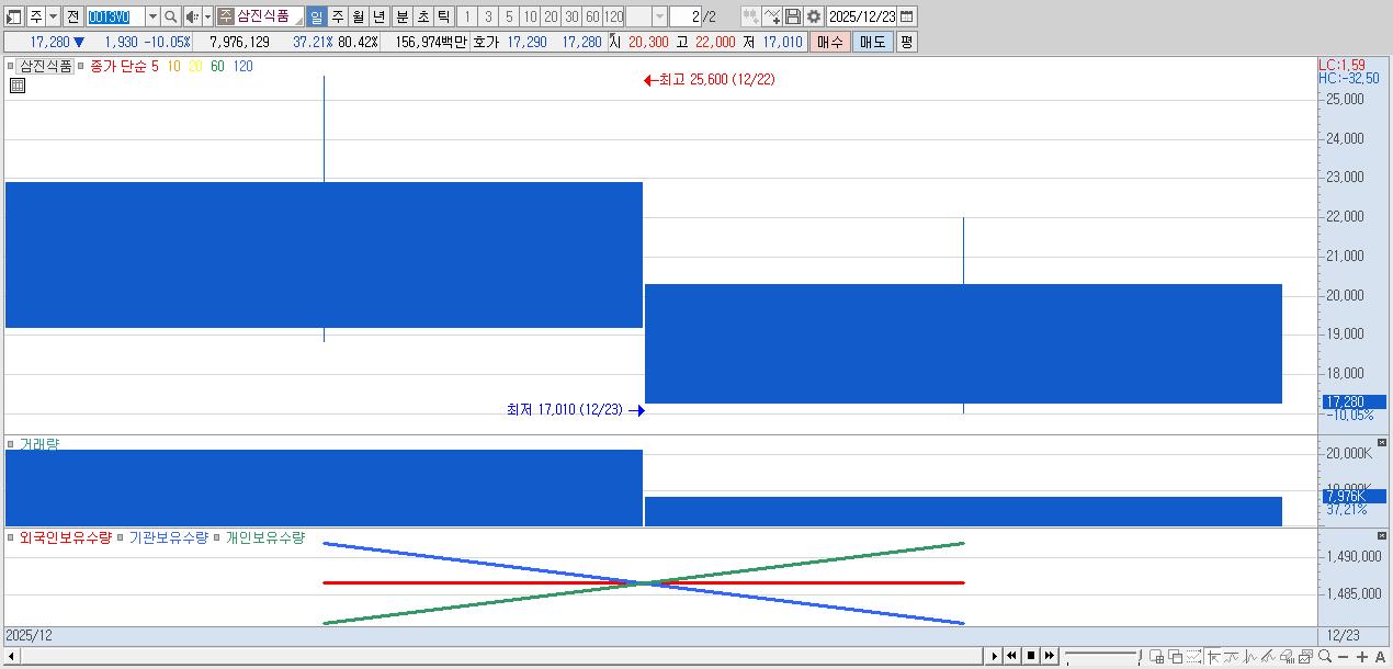 30.삼진식품 17,280원 ▼ -10.05% (KOSDAQ, 0013V0)