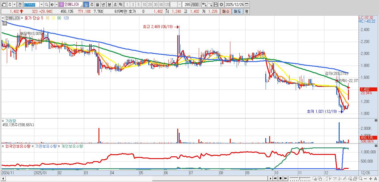 - 인베니아 (1,402원 ▲ 29.94% , 시총: 81억, 거래량: 450,135, 거래대금:6억)