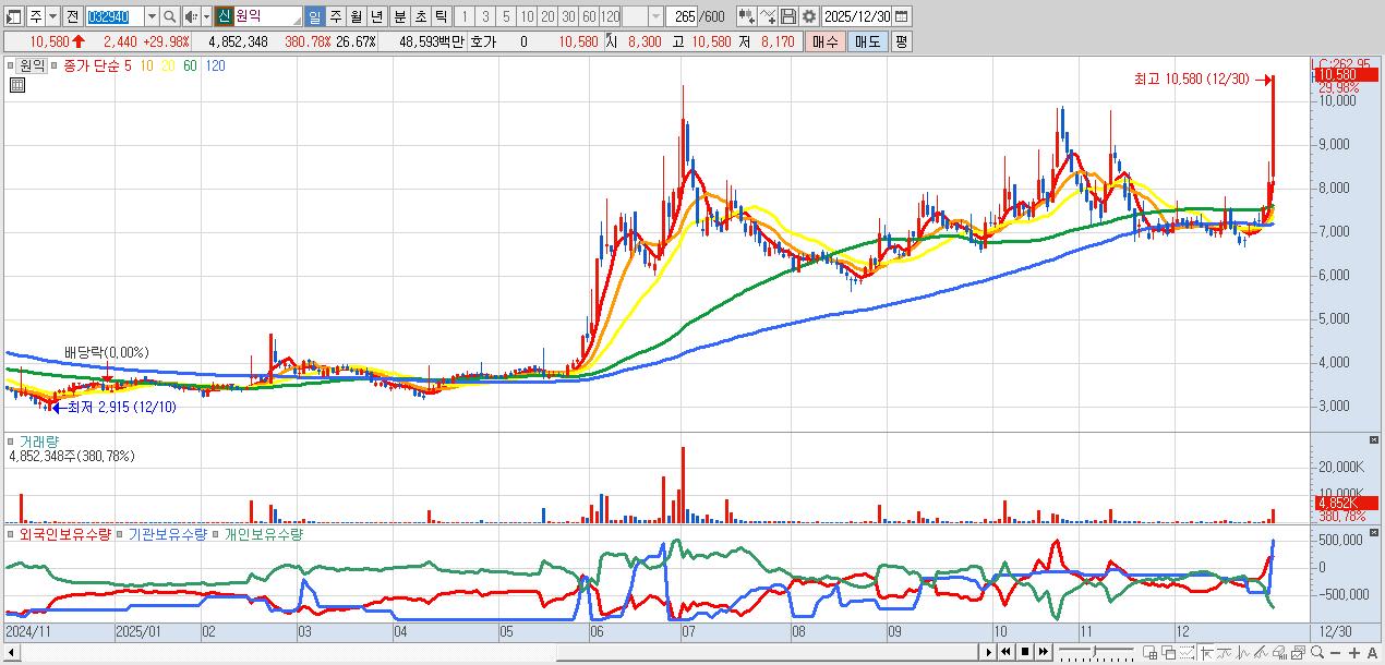 원익 10,580원 ▲ 29.98% (KOSDAQ, 032940)