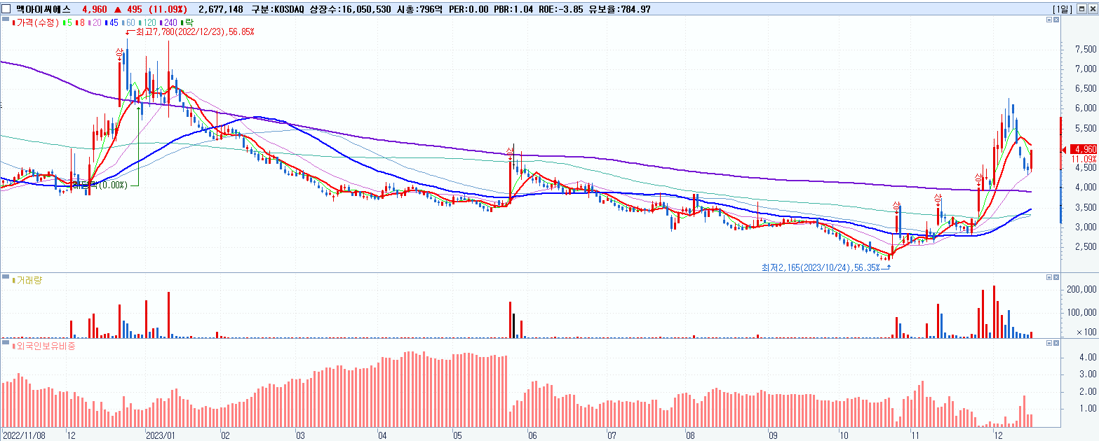 시총: 663억 거래량: 9,679,991 거래대금:49억