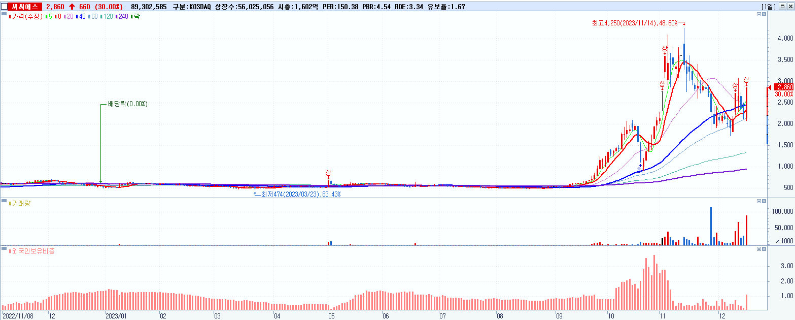 시총: 1,602억 거래량: 89,610,929 거래대금:2,428억