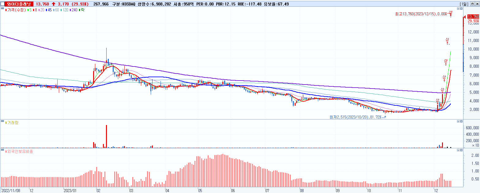 시총: 553억 거래량: 9,558,784 거래대금:166억
