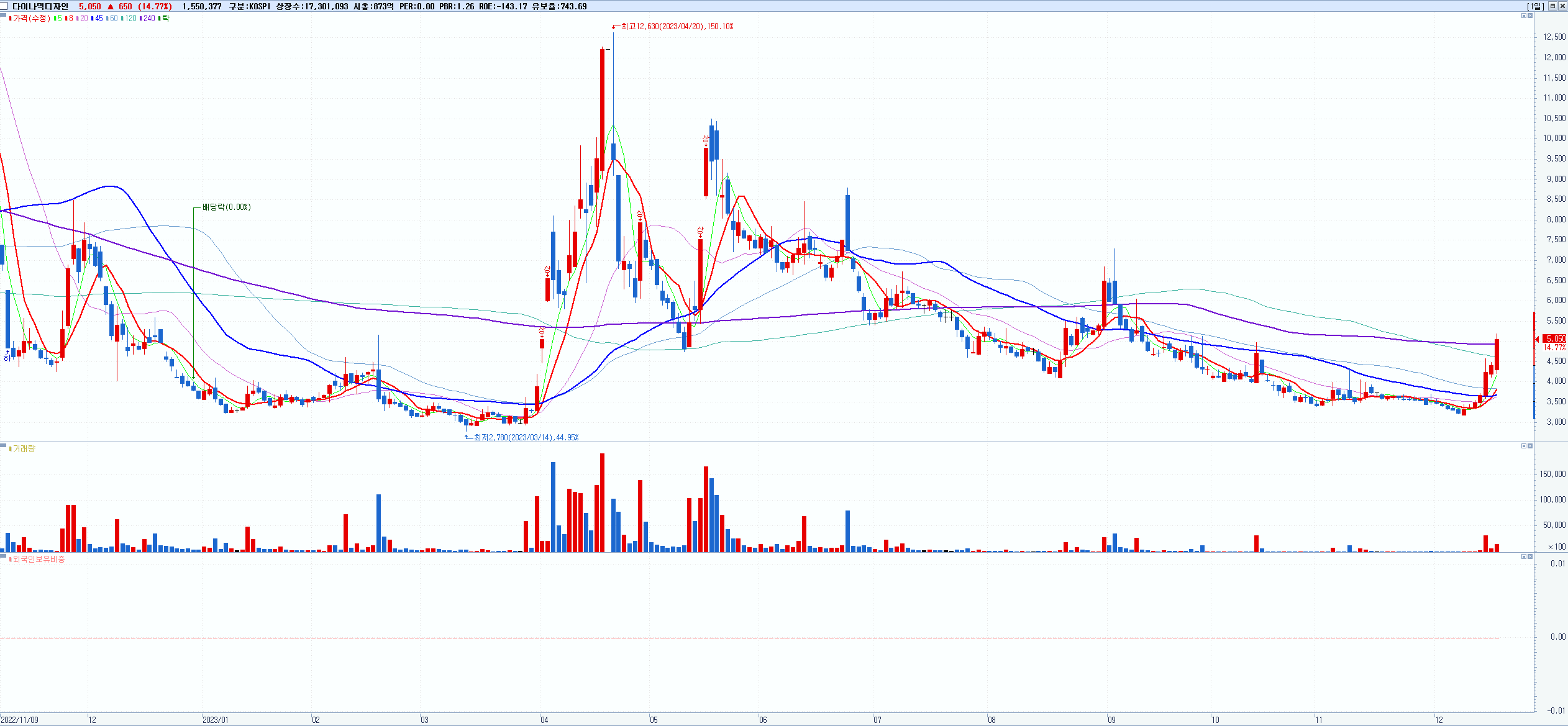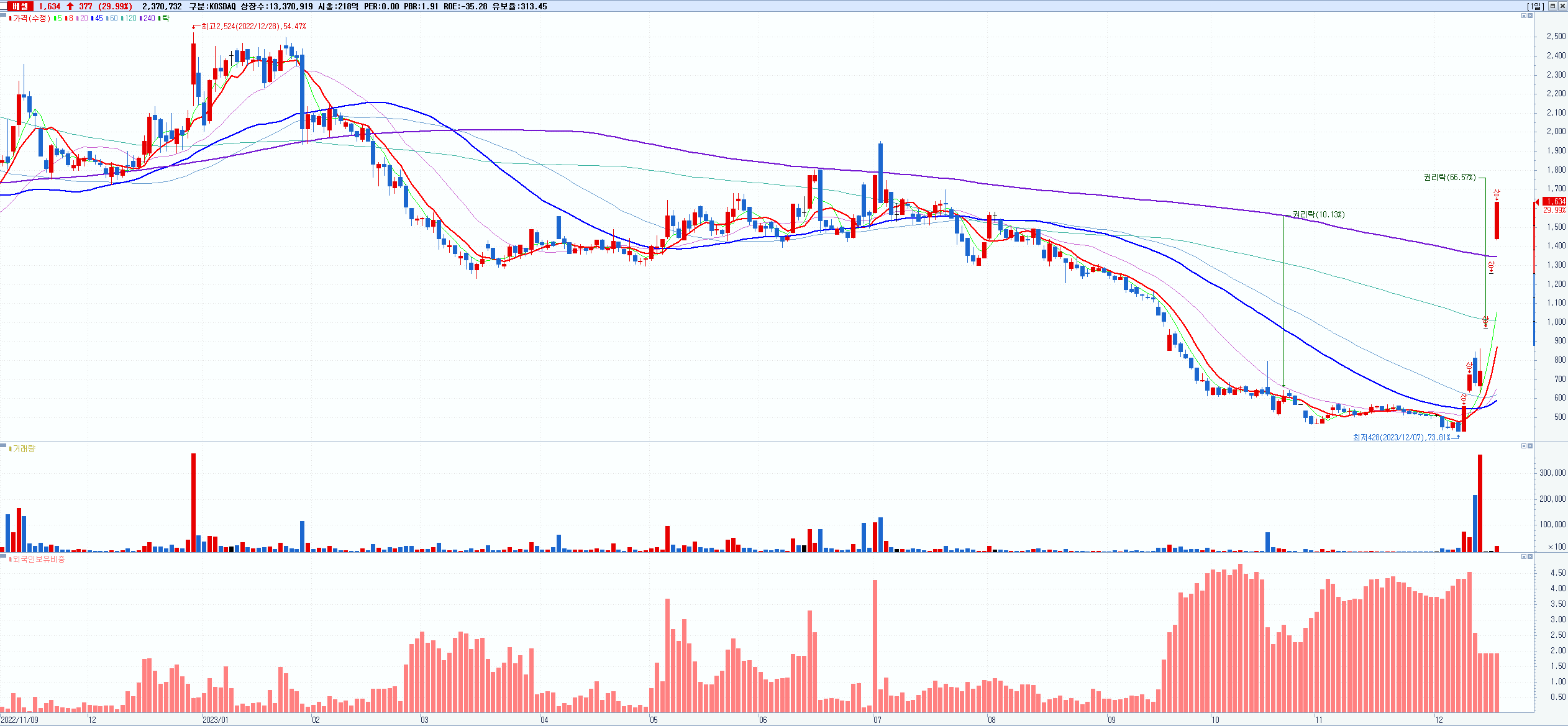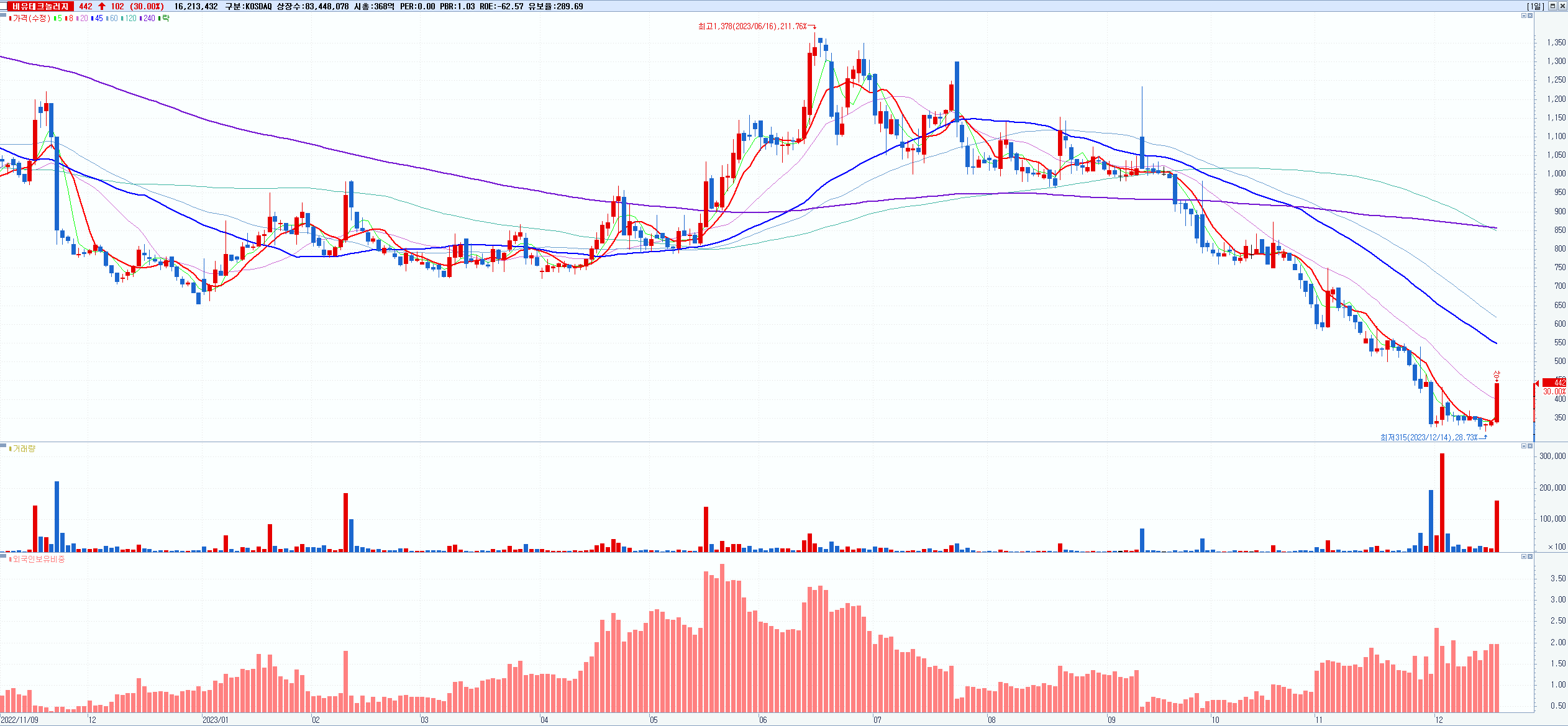 시총: 369억 거래량: 16,238,143 거래대금:67억