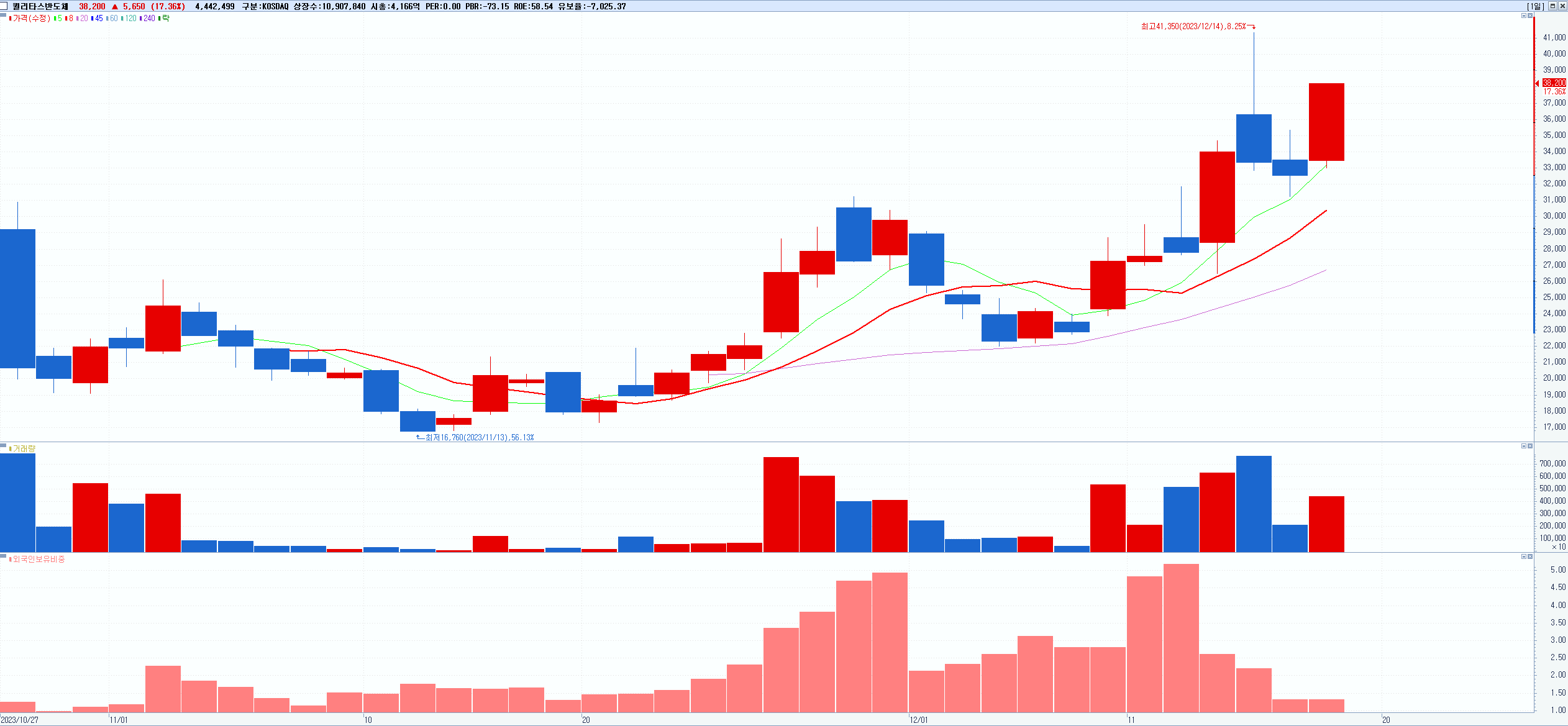 - 퀄리타스반도체 (38,200원 ▲ 17.36% , 시총: 4,167억, 거래량: 4,470,918, 거래대금:1,599억)