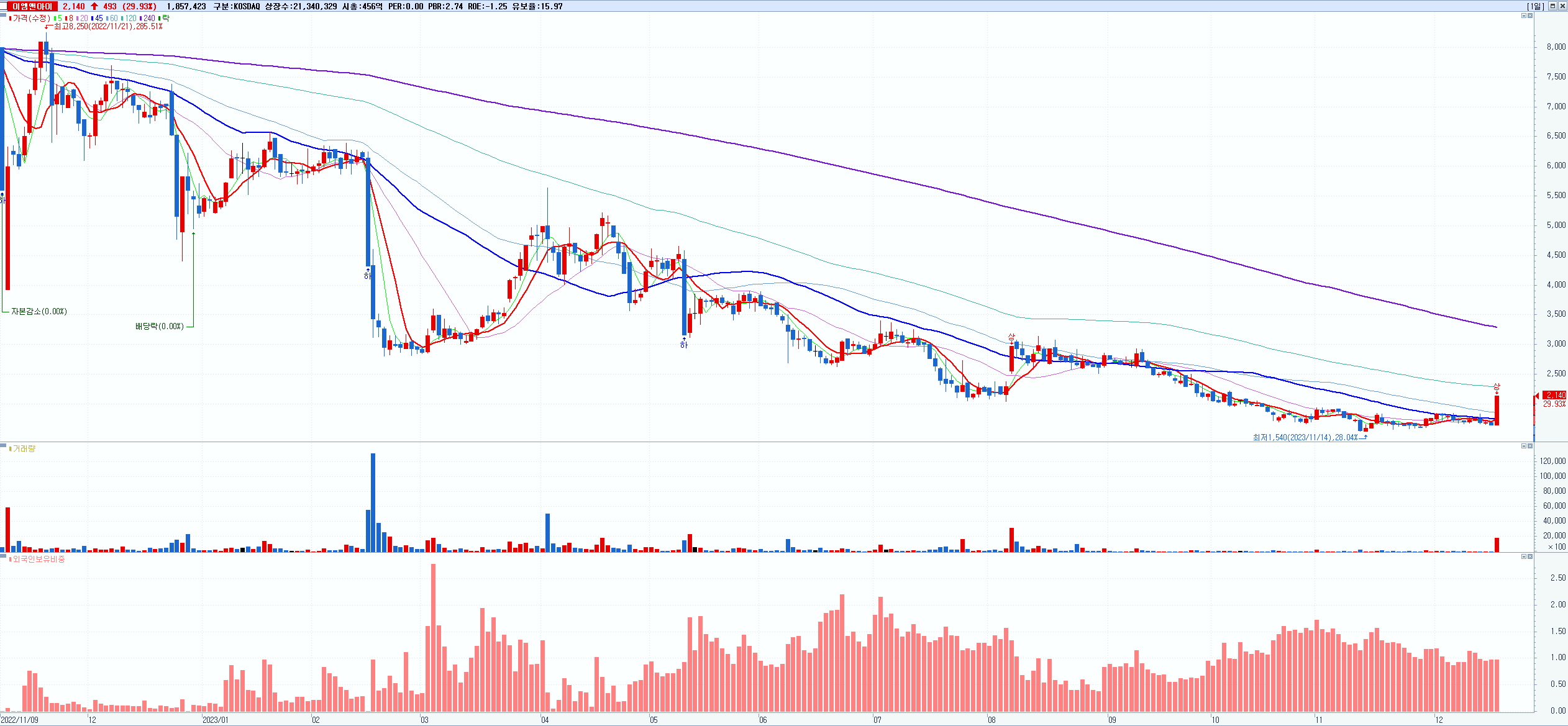 시총: 218억 거래량: 2,370,787 거래대금:37억