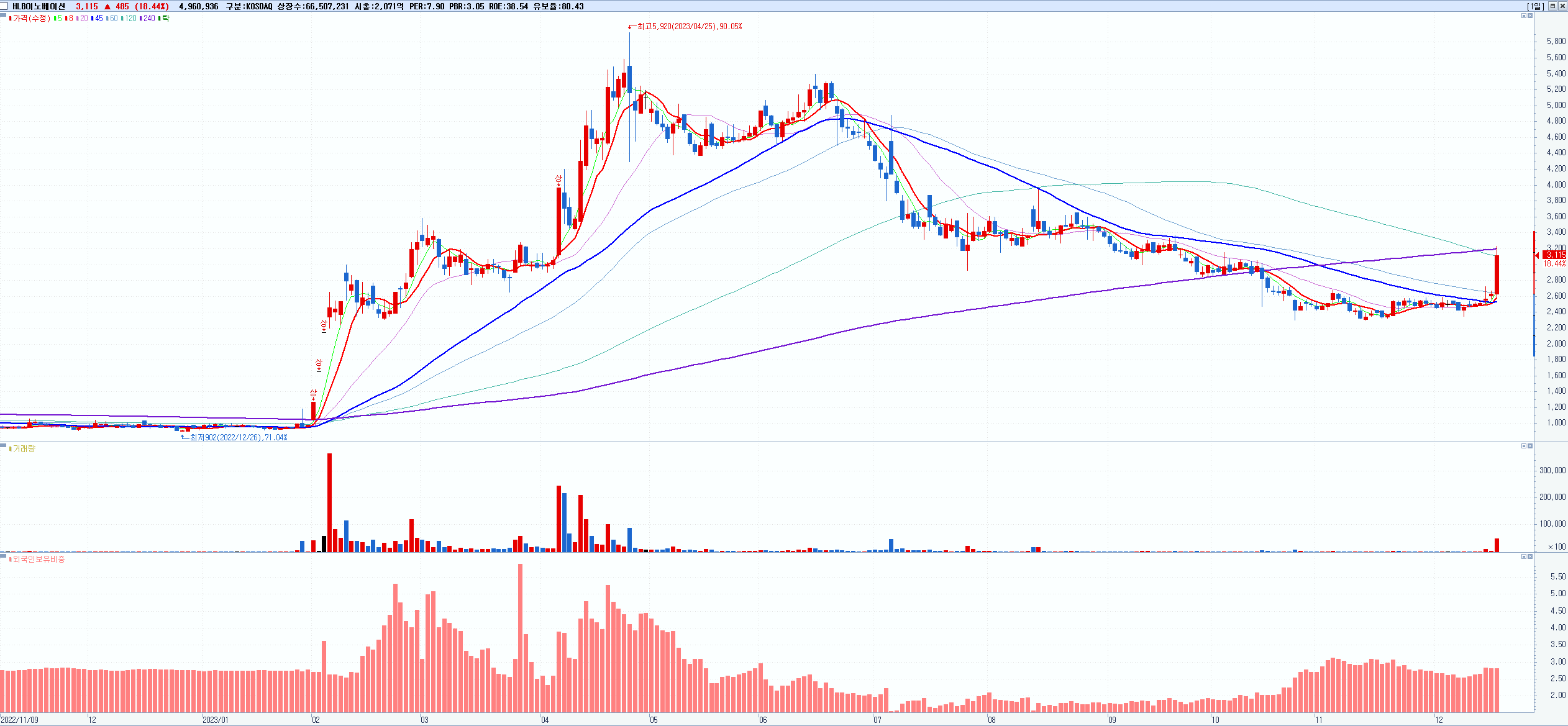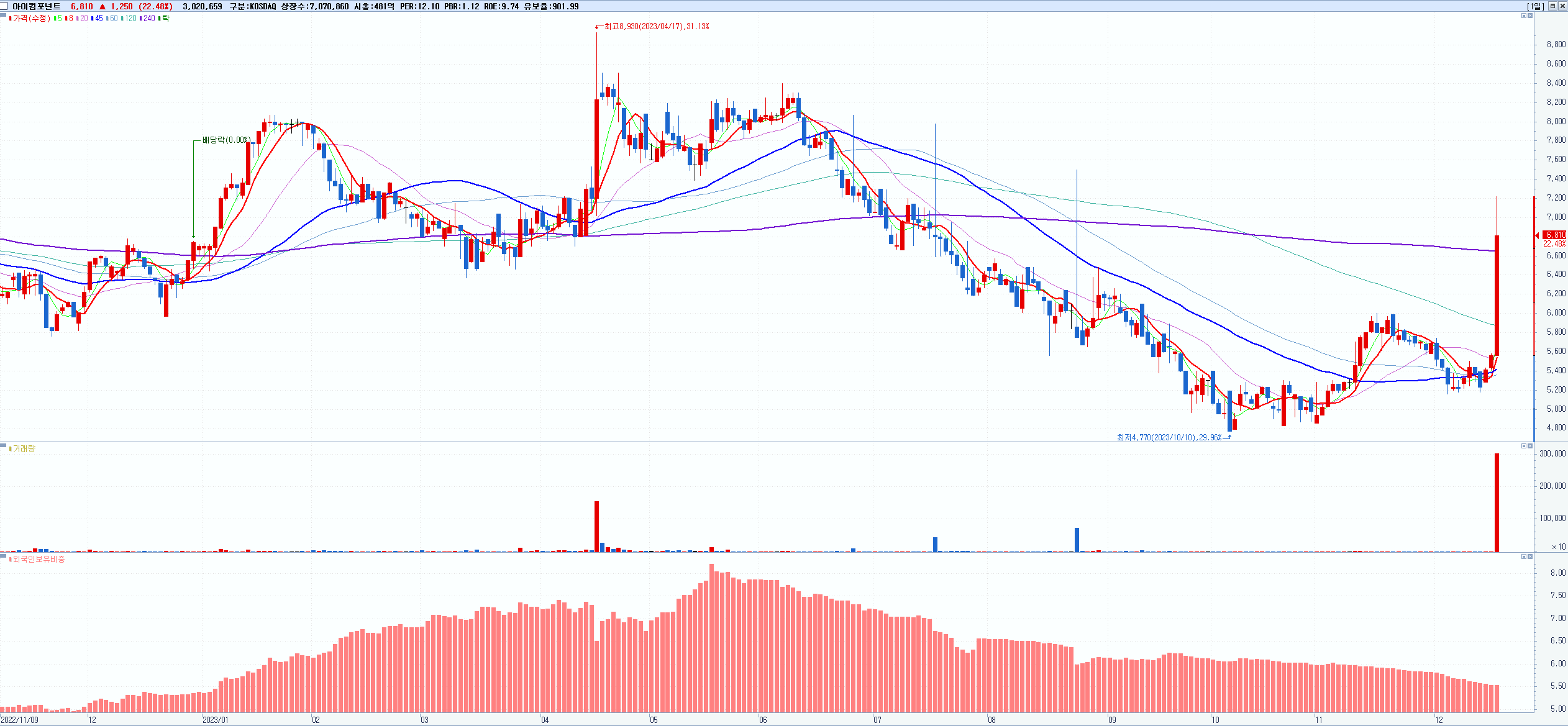 시총: 2,955억 거래량: 16,442,088 거래대금:1,146억