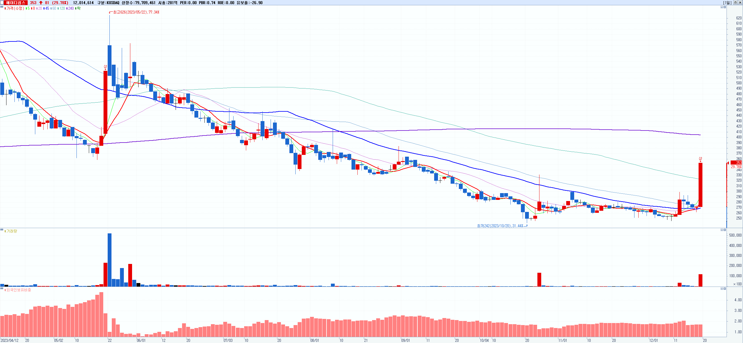 시총: 279억 거래량: 762,664 거래대금:21억