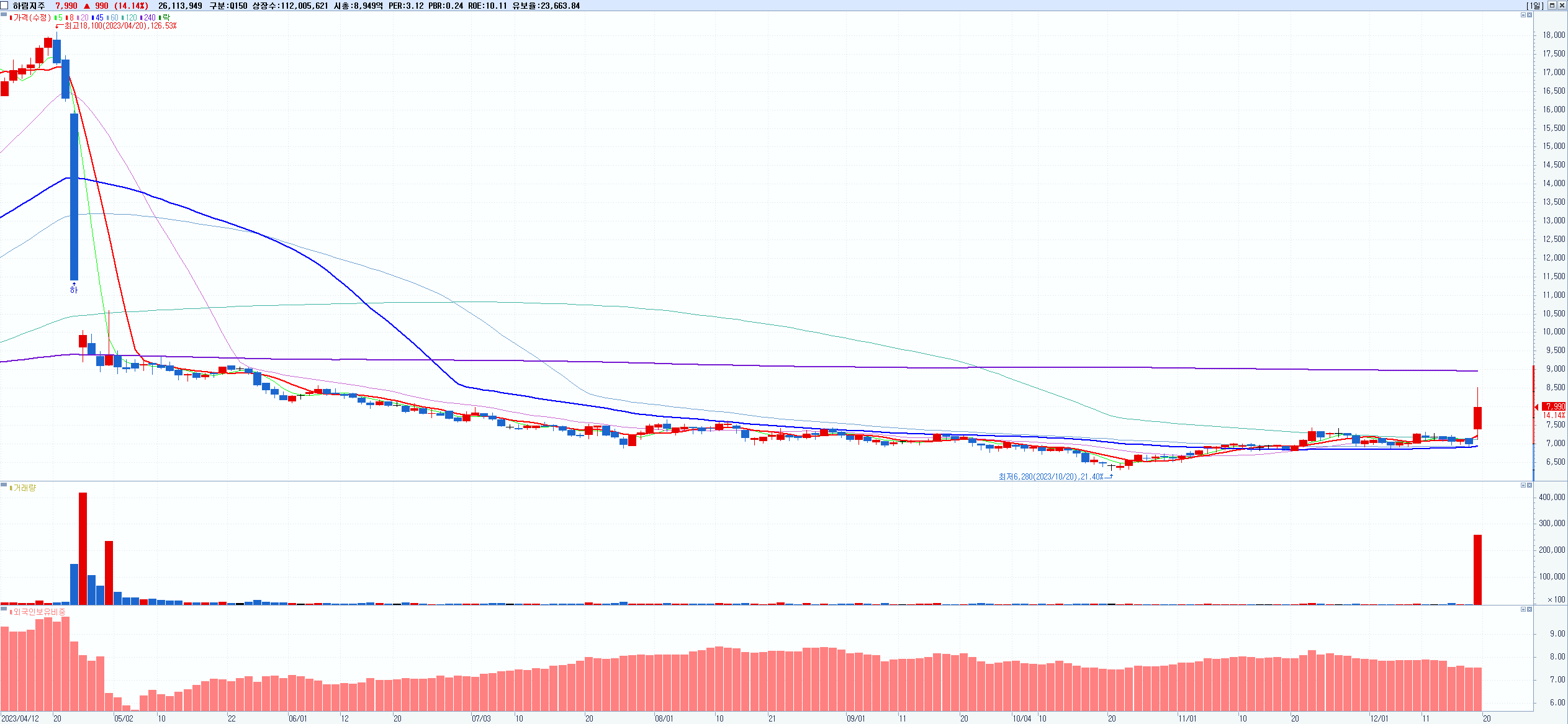 시총: 2,601억 거래량: 25,416,263 거래대금:3,545억