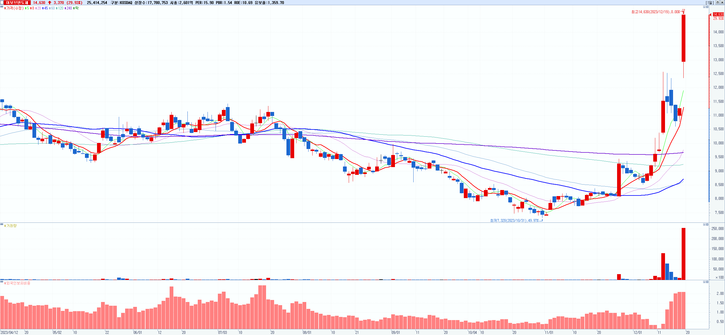 4.어보브반도체 14,630원 ▲ 29.93% (KOSDAQ, 102120)