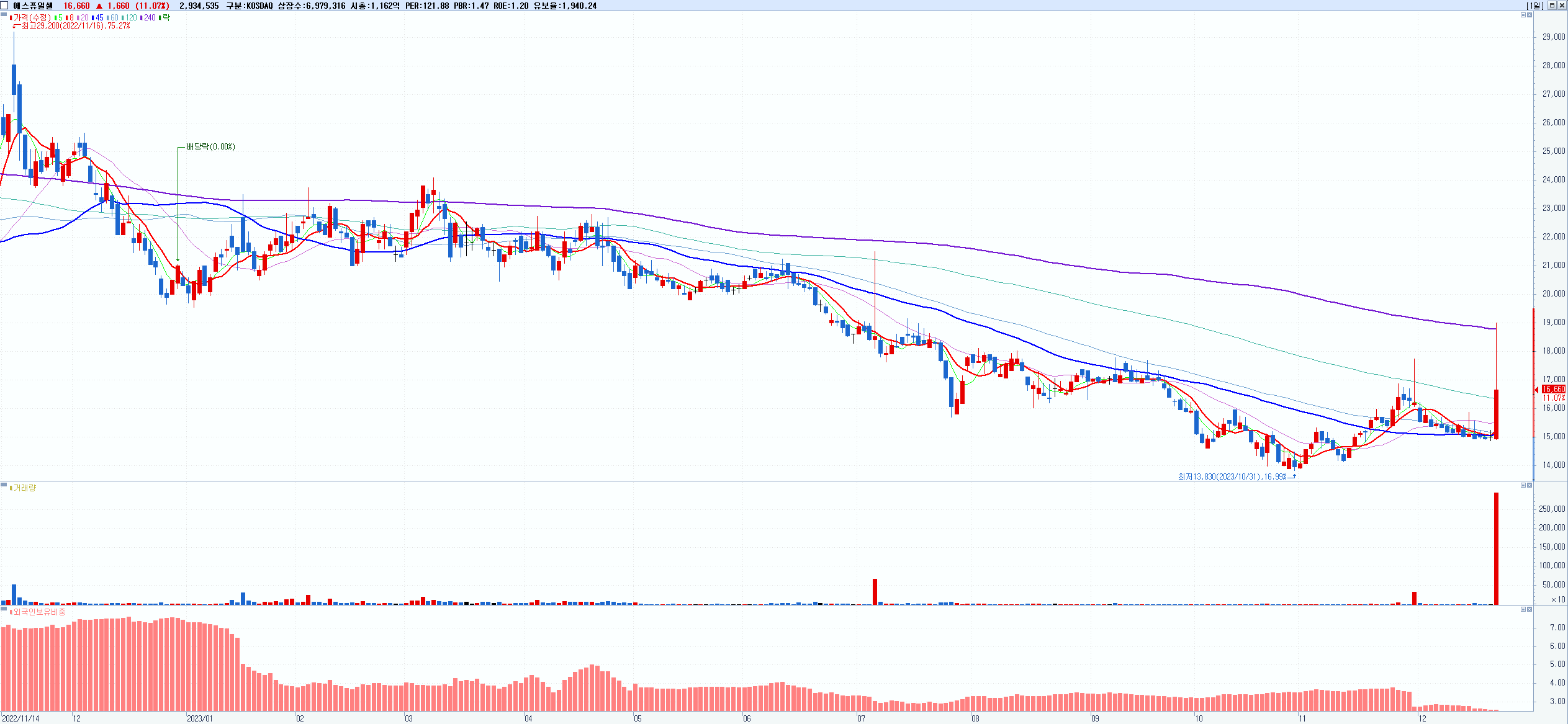 시총: 2,228억 거래량: 1,211,923 거래대금:450억