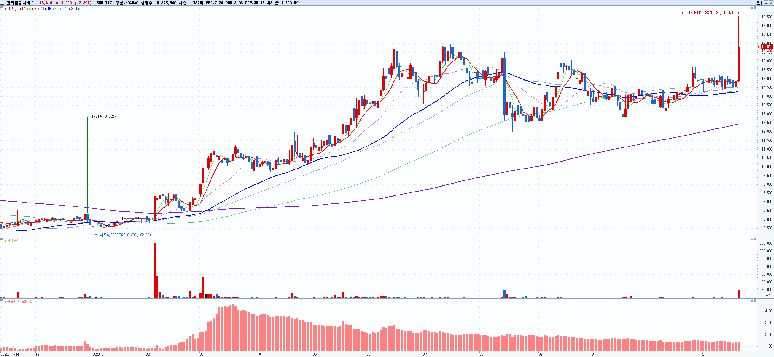 - 인카금융서비스 (16,810원 ▲ 12.89% , 시총: 1,727억, 거래량: 509,018, 거래대금:84억)