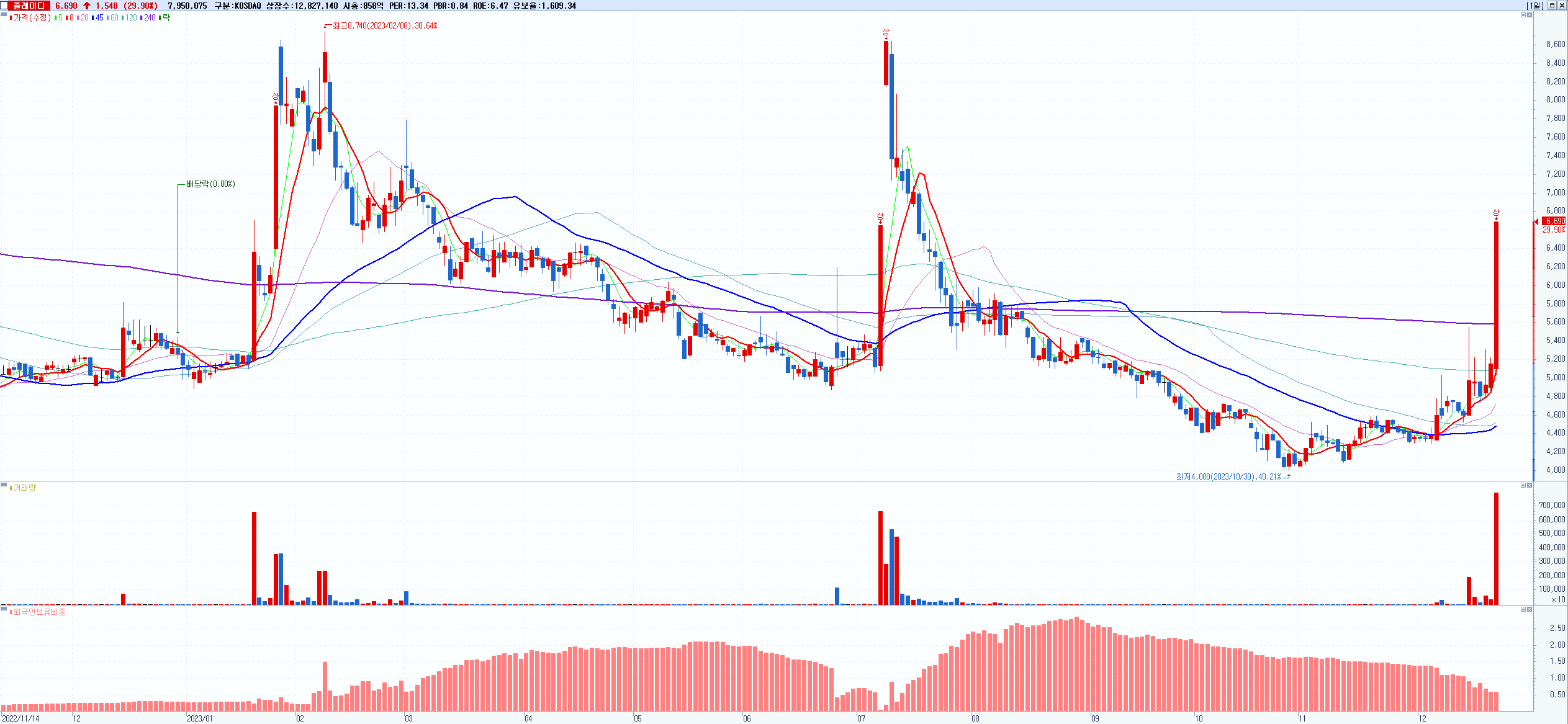 시총: 4,591억 거래량: 13,595,361 거래대금:2,309억