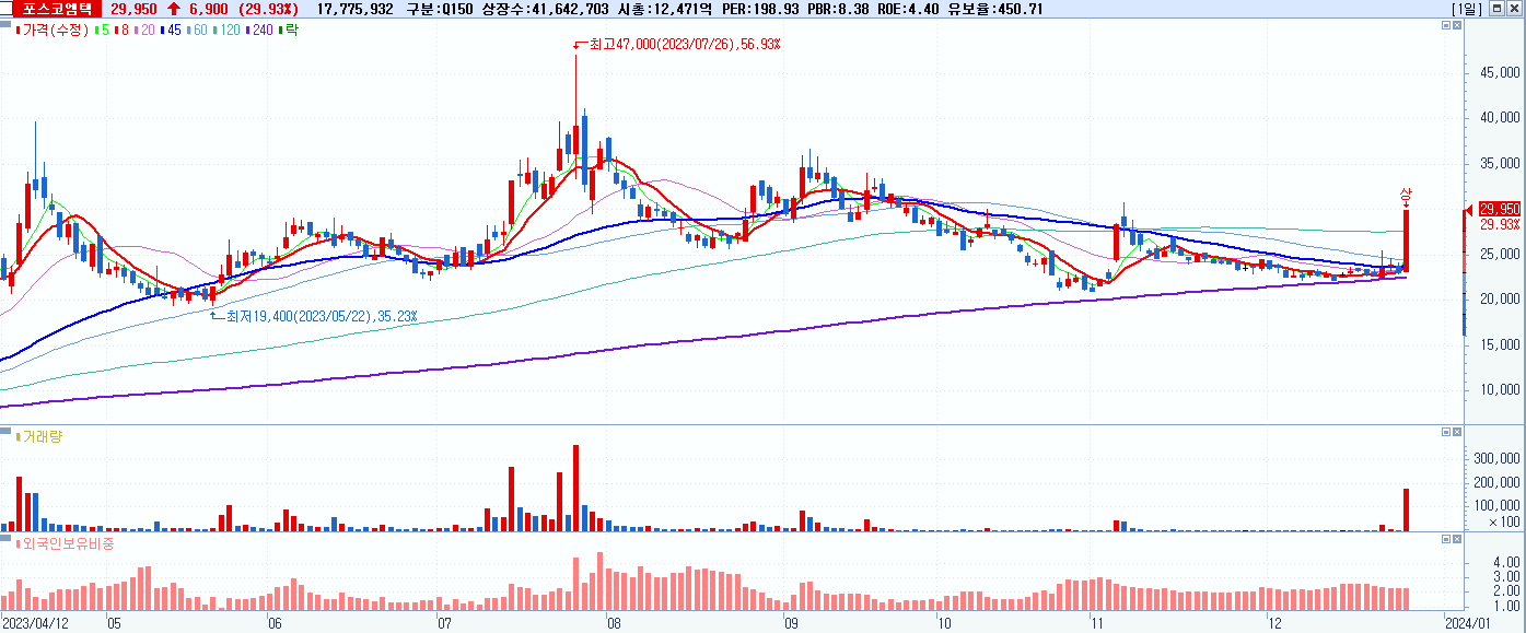 4.포스코엠텍 29,950원 ▲ 29.93% (KOSDAQ, 009520)