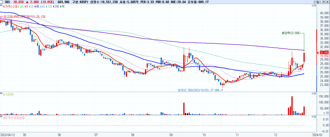 30.SBS 30,650원 ▲ 10.05% (KOSPI, 034120)