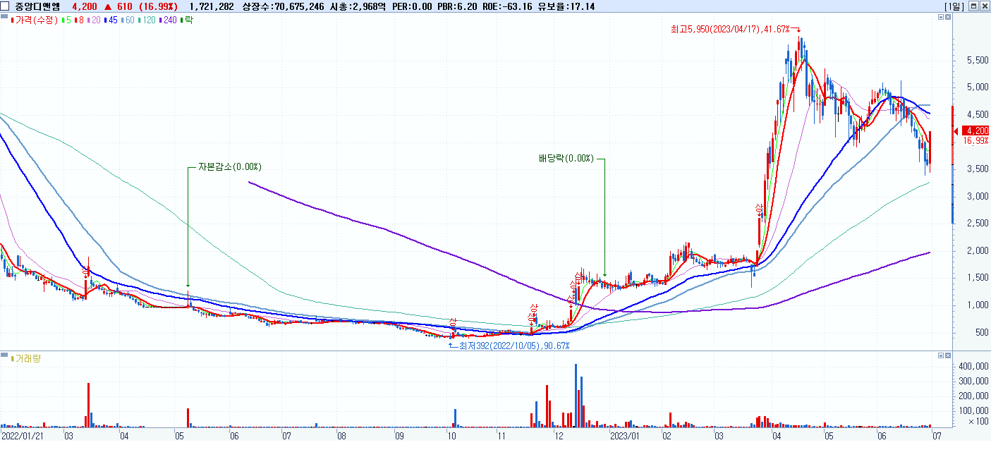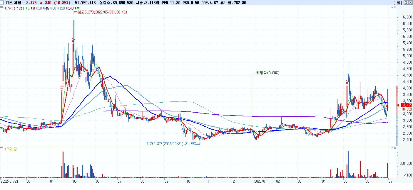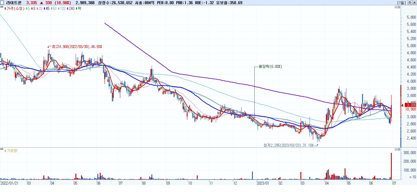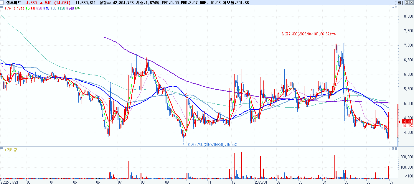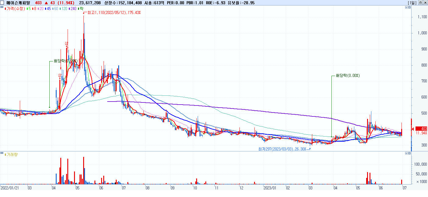 시총: 449억 거래량: 22,905,231 거래대금:43억