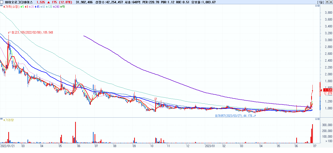 시총: 4,032억 거래량: 1,214,892 거래대금:270억