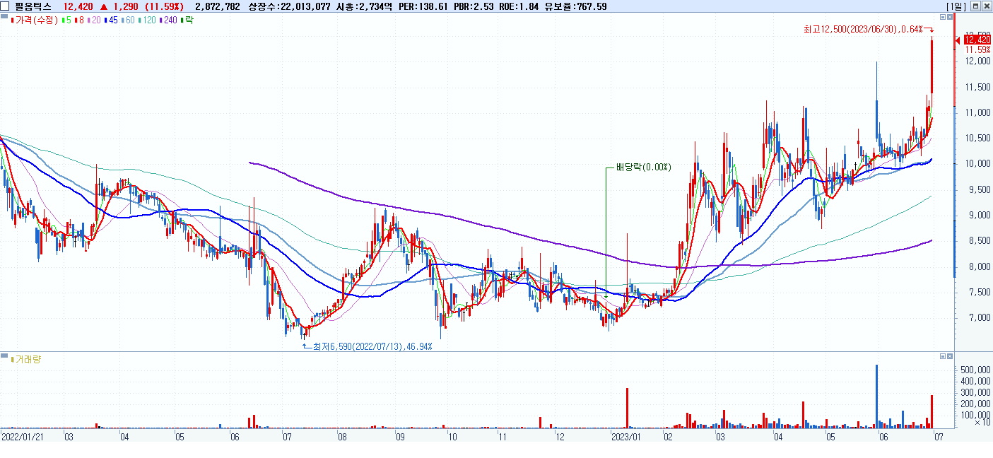 시총: 1,315억 거래량: 11,066,189 거래대금:802억