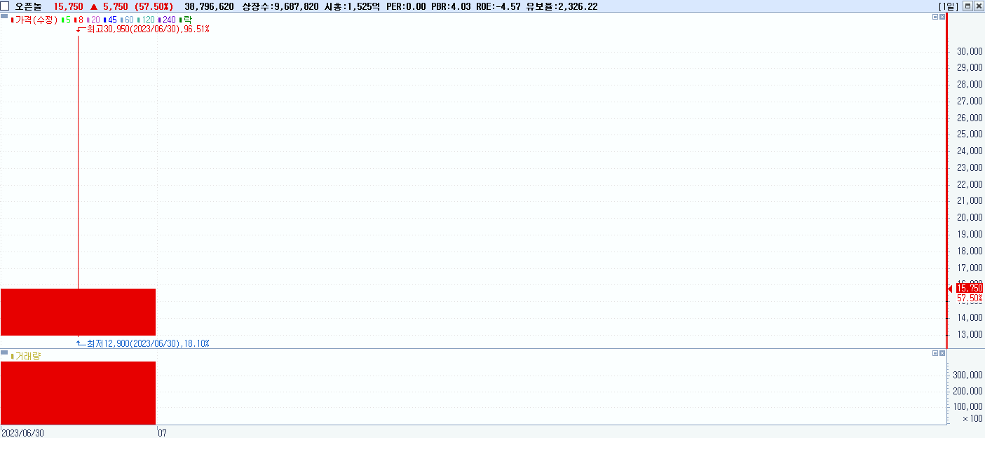 시총: 1,526억 거래량: 38,796,620 거래대금:9,295억