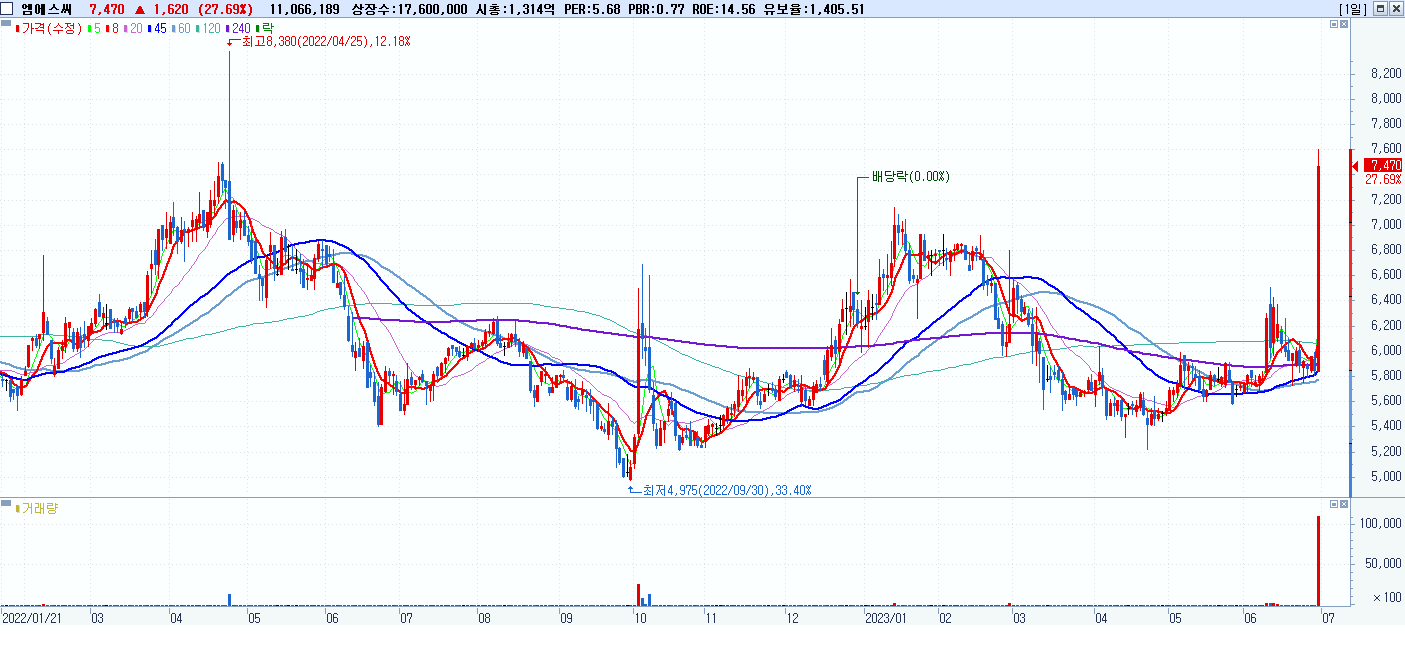 시총: 5,937억 거래량: 5,241,971 거래대금:7,613억