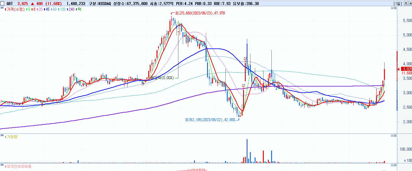 시총: 15,446억 거래량: 5,248,112 거래대금:2,692억
