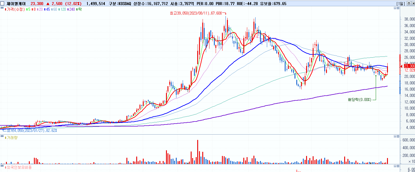 - 제이엘케이 (23,300원 ▲ 12.02% , 시총: 3,767억, 거래량: 1,503,948, 거래대금:344억)