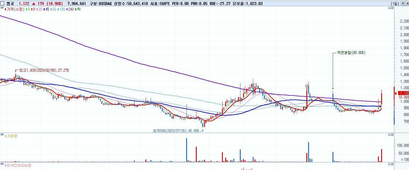 시총: 1,611억 거래량: 31,408,932 거래대금:830억