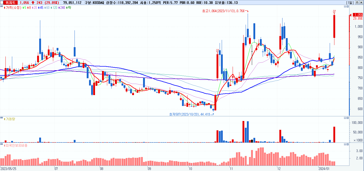 5.위지트 1,056원 ▲ 29.89% (KOSDAQ, 036090)