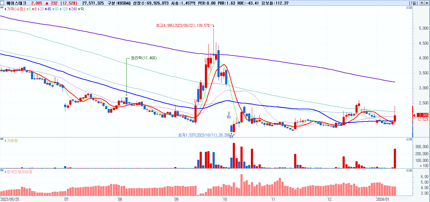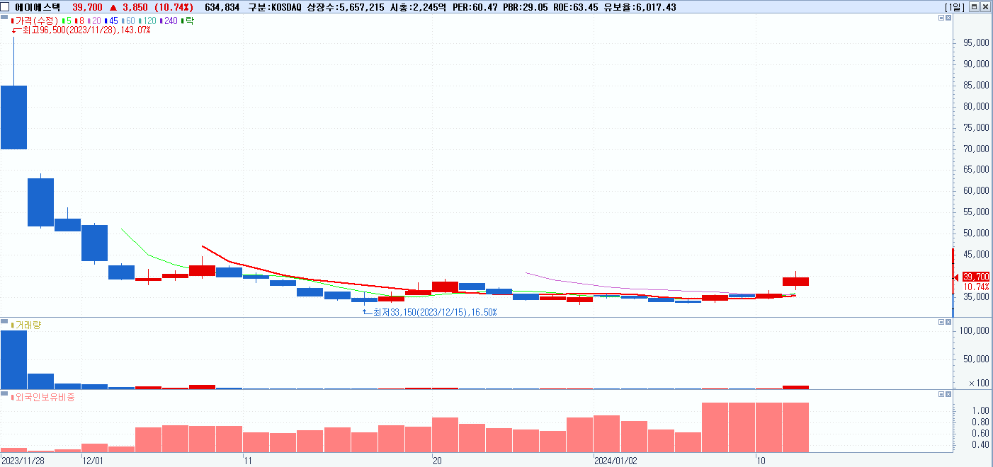 30.에이에스텍 39,700원 ▲ 10.74% (KOSDAQ, 453860)