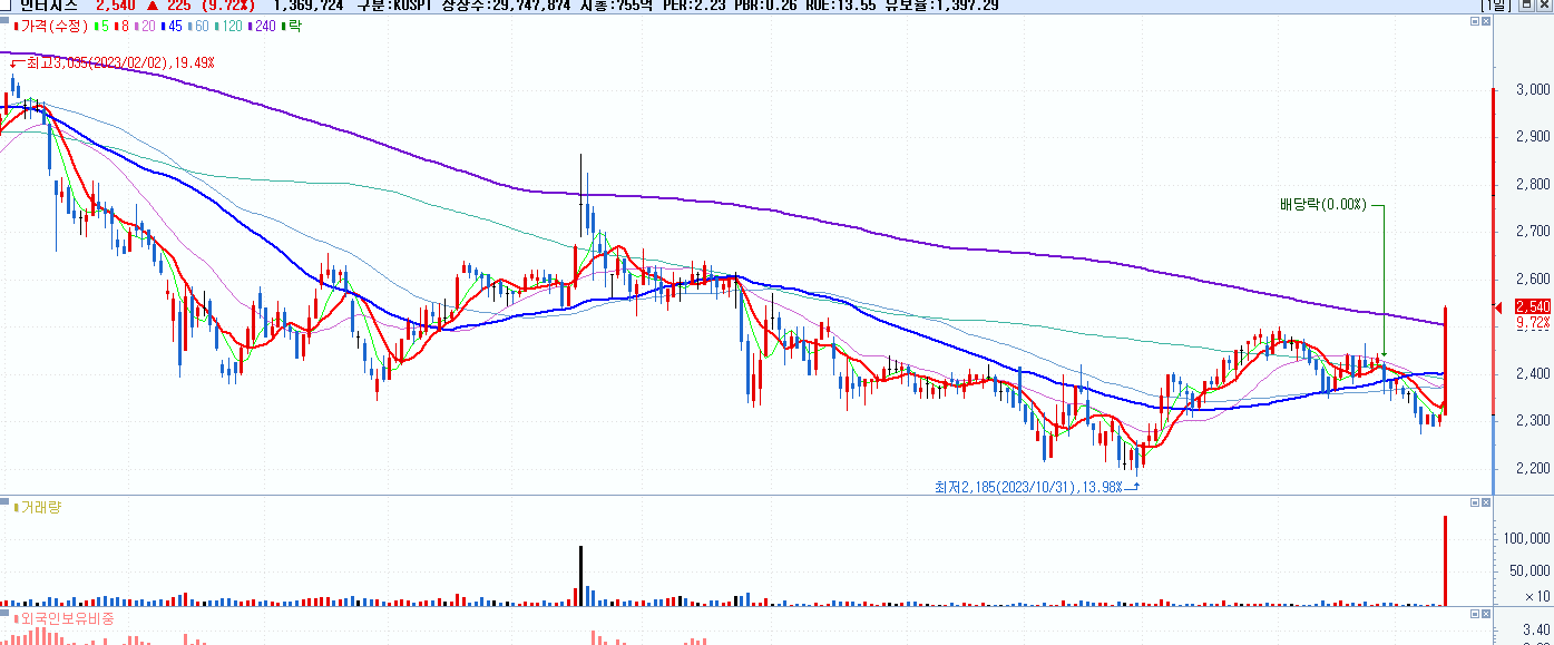 - 인터지스 (2,540원 ▲ 9.72% , 시총: 756억, 거래량: 1,628,577, 거래대금:41억)