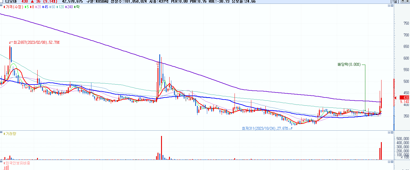 시총: 662억 거래량: 4,600,875 거래대금:332억