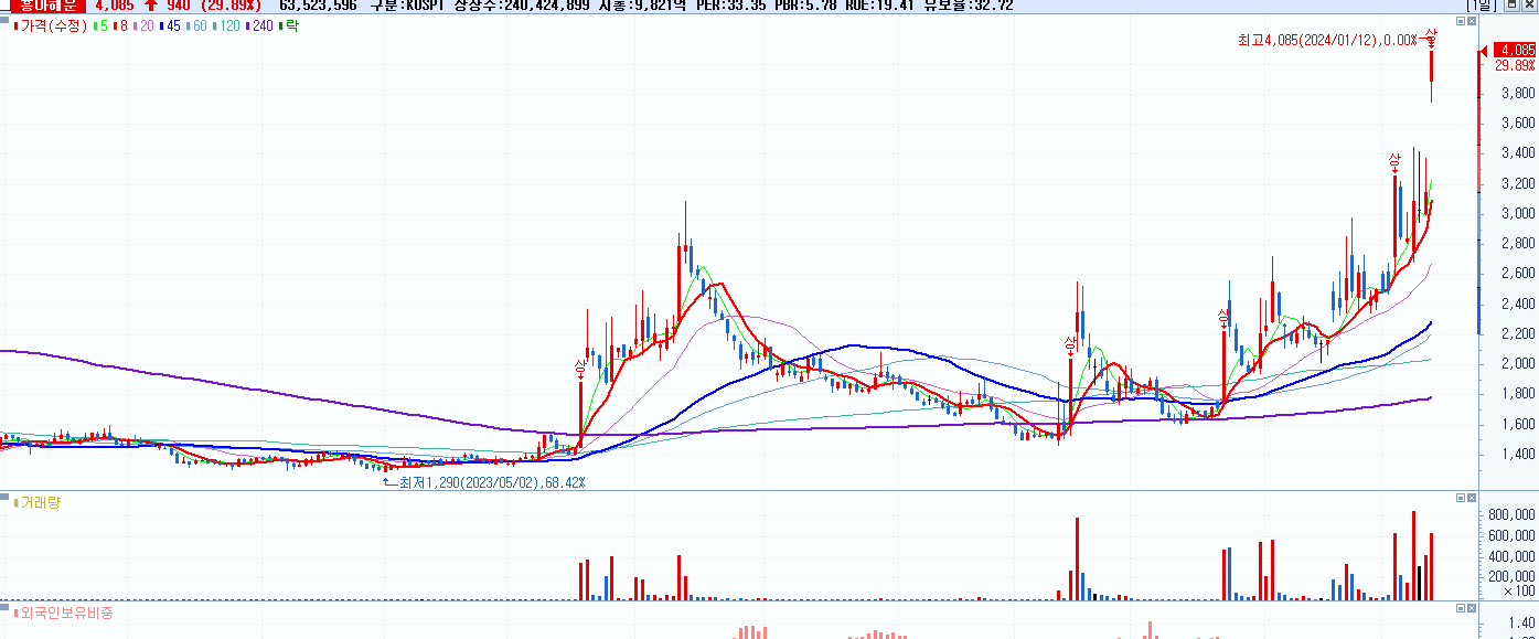 시총: 3,379억 거래량: 2,816,666 거래대금:778억