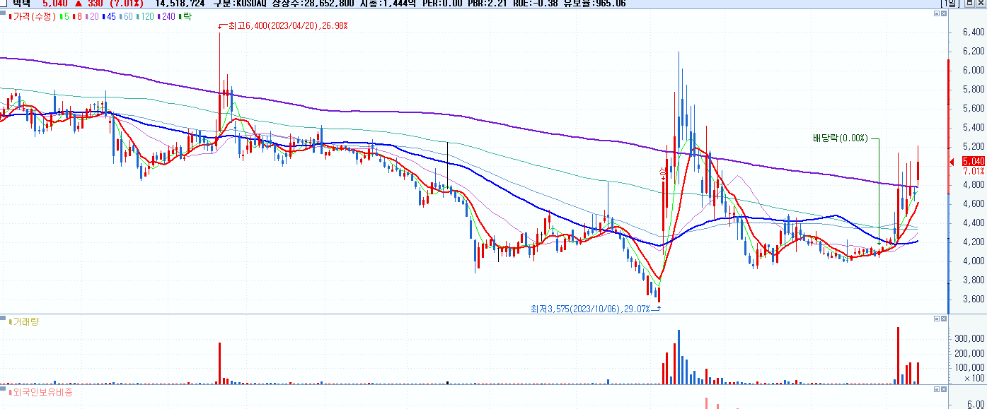 시총: 506억 거래량: 463,506 거래대금:143억