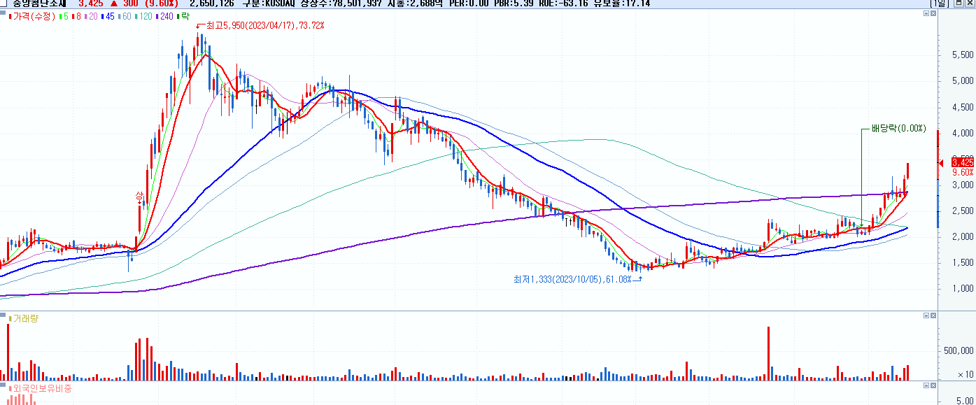 시총: 6,545억 거래량: 7,118,096 거래대금:2,648억