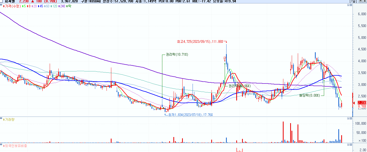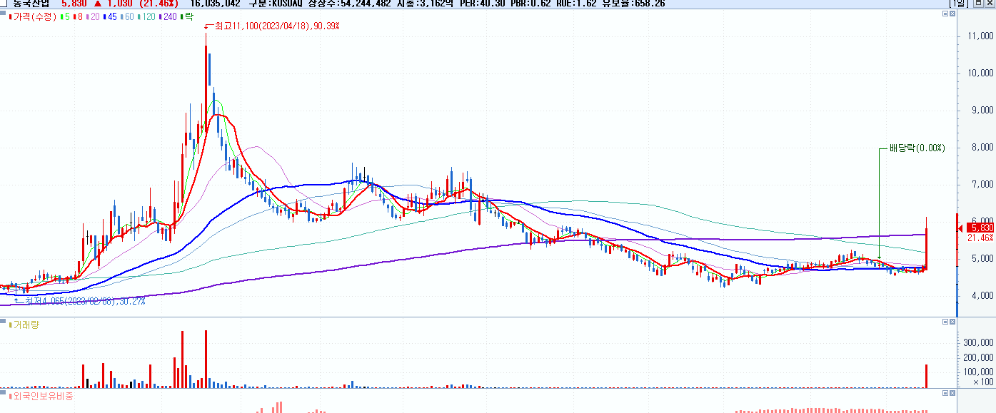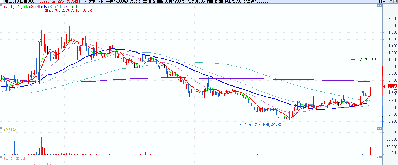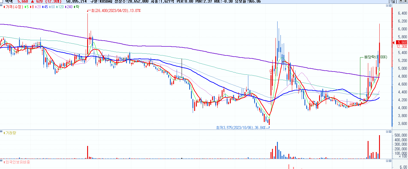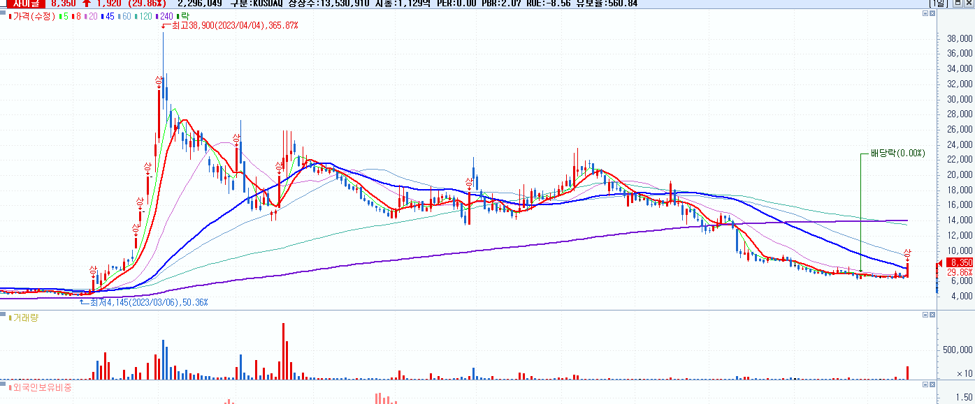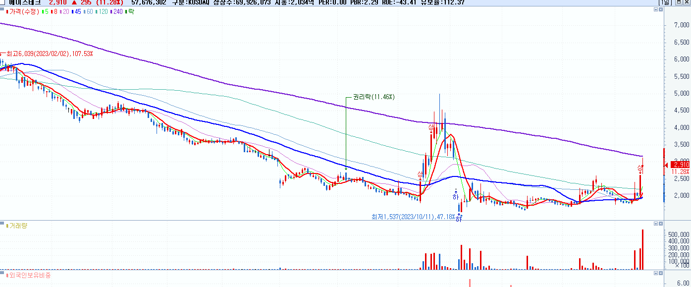 시총: 400억 거래량: 1,935,352 거래대금:60억