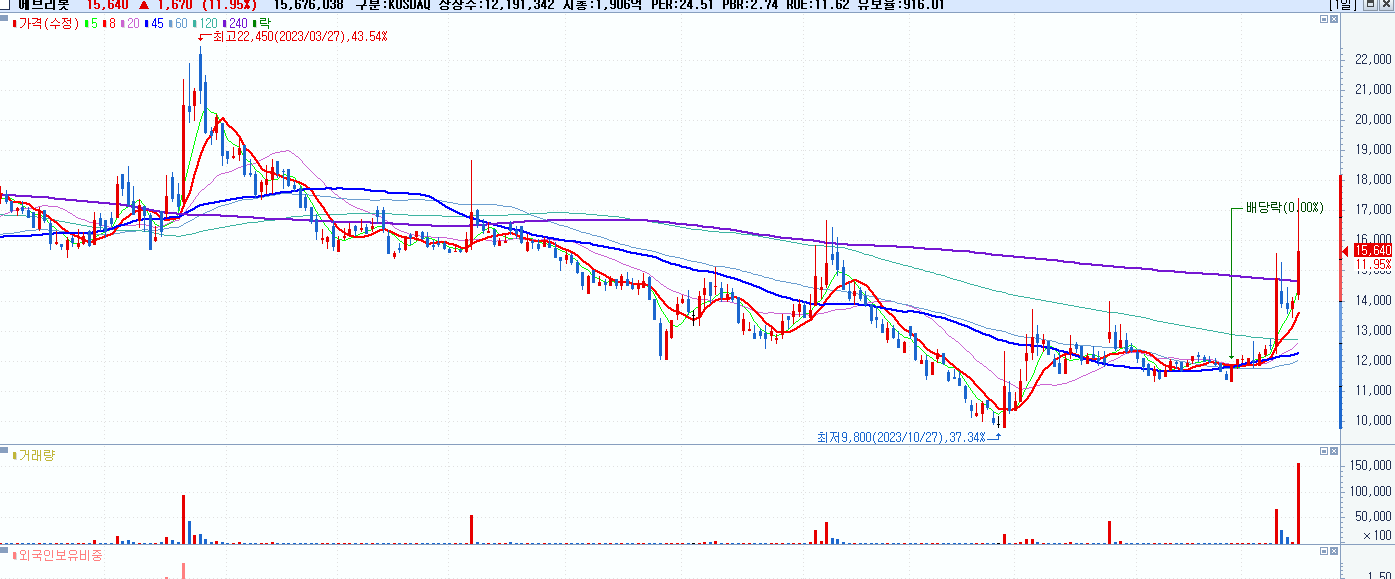 시총: 1,605억 거래량: 1,444,840 거래대금:241억