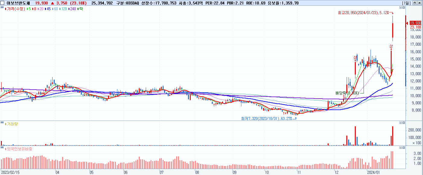 4.어보브반도체 19,930원 ▲ 23.18% (KOSDAQ, 102120)