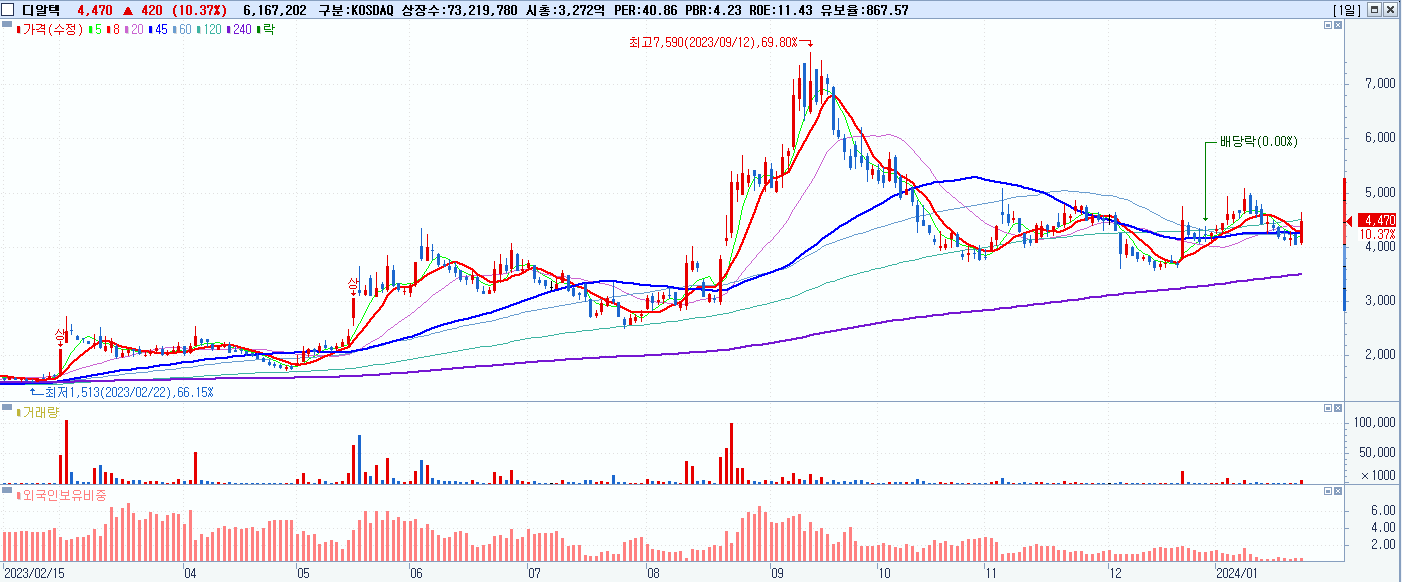 30.디알텍 4,470원 ▲ 10.37% (KOSDAQ, 214680)