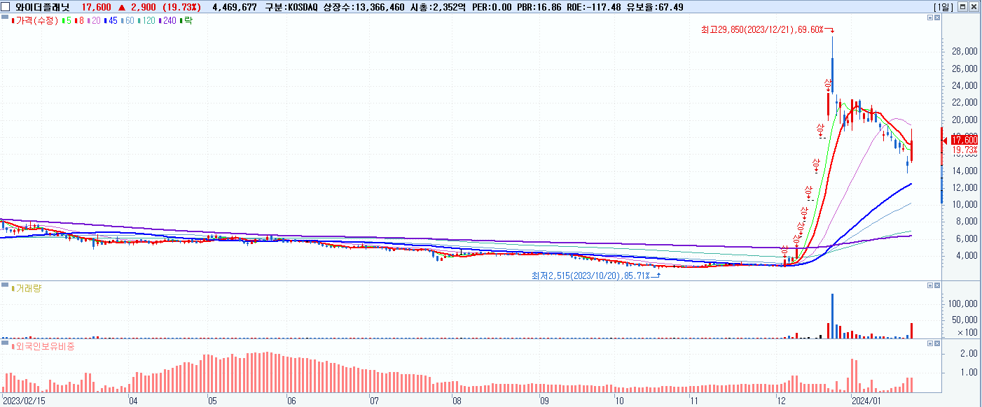 - 와이팜 (3,145원 ▲ 14.16% , 시총: 1,240억, 거래량: 4,640,057, 거래대금:147억)