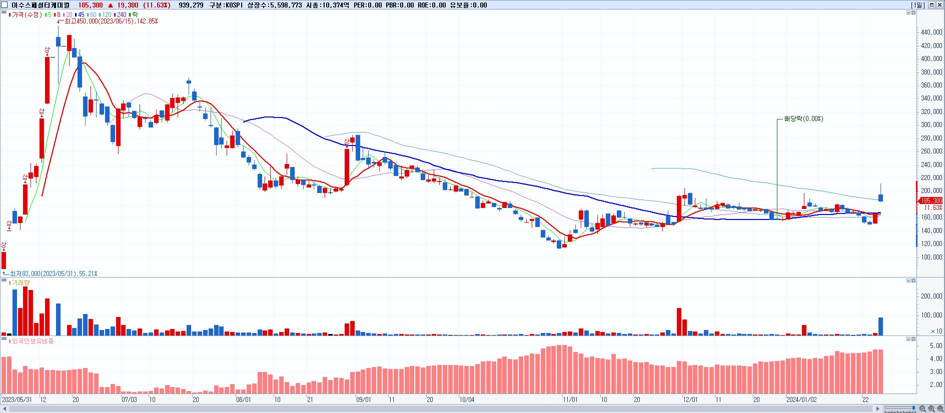시총: 1,800억 거래량: 115,177,647 거래대금:10,813억