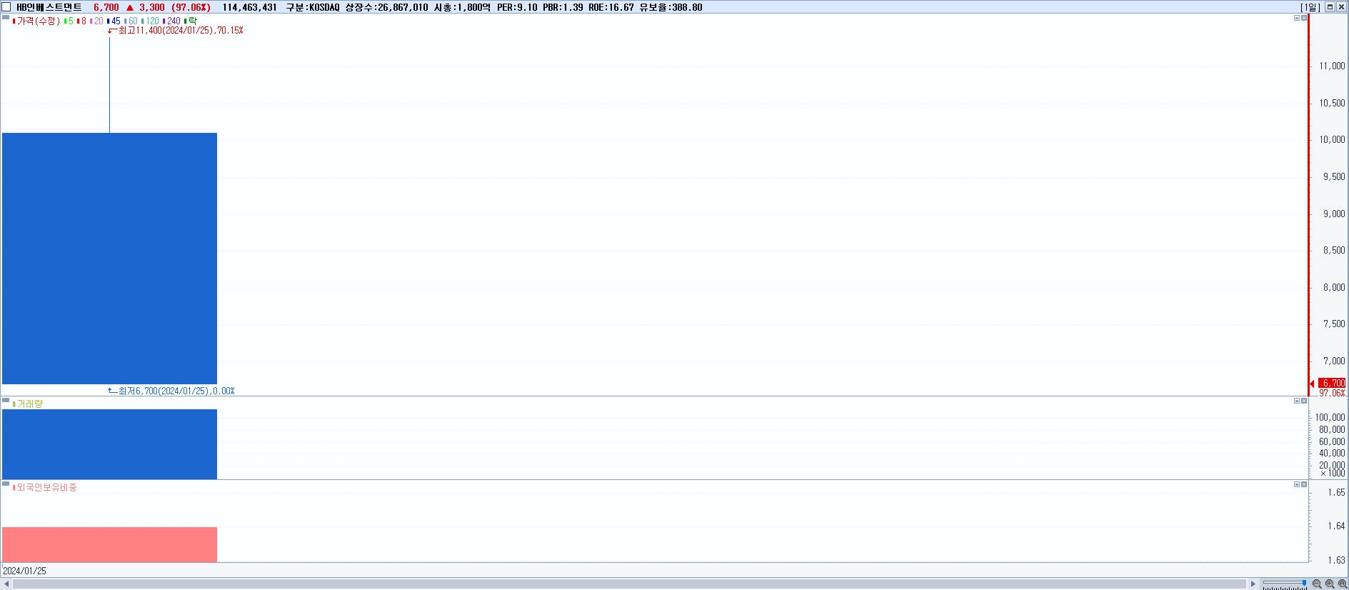 시총: 1,141억 거래량: 149,704 거래대금:15억