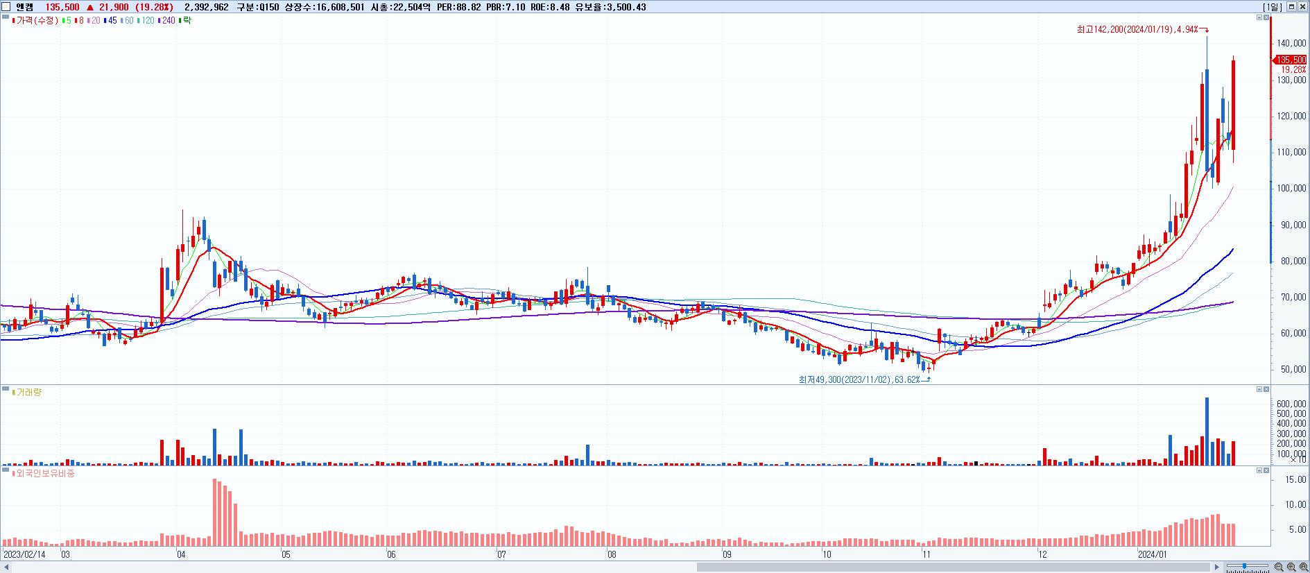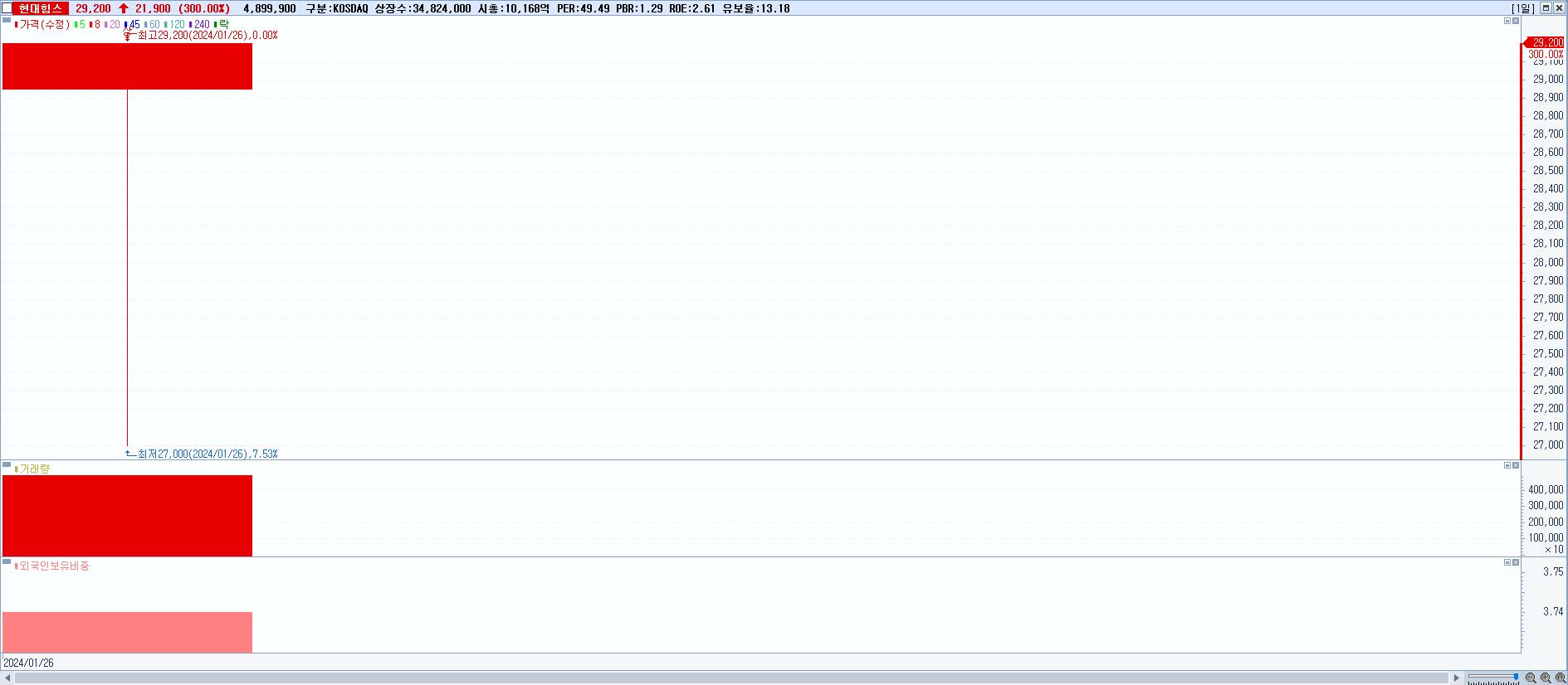 시총: 10,169억 거래량: 4,900,190 거래대금:1,419억