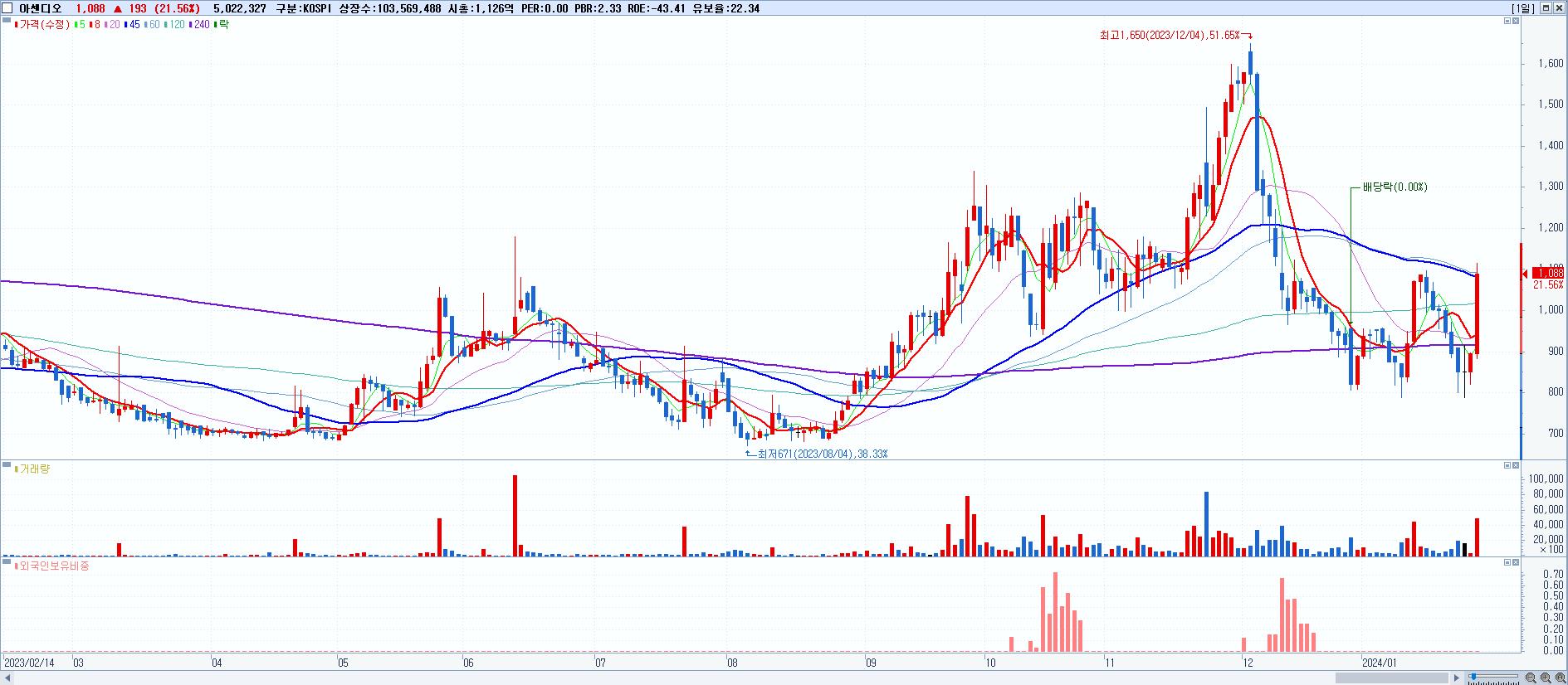 시총: 2,631억 거래량: 19,083,685 거래대금:1,862억